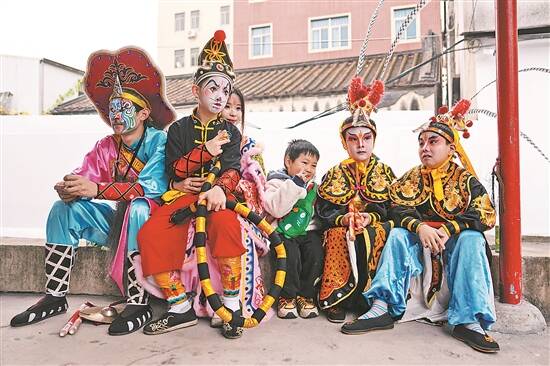 英歌队员在表演间隙休息