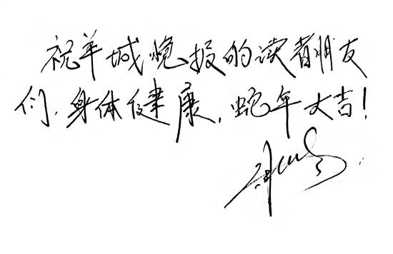 祝羊城晚报的读者朋友们身体健康、蛇年大吉!