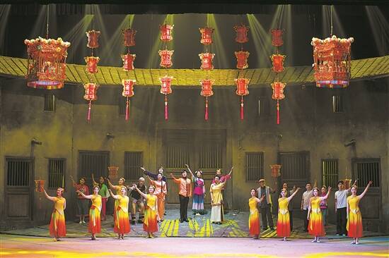 “哦嘿……”该剧以“喜迎八方客”作为开场仪式,以“声动云霄”作为序章,重头戏为“薪火相传”“挽月相思”“烟火人间”“绮梦千年”4大篇章,展示了客家山歌、广东汉剧、提线木偶、采茶戏、客家民俗歌舞等多种艺术元素,凸显出梅州魅力四射的非遗技艺。