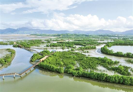 近年来,广东始终坚持加大红树林保护力度,强化巡护管理,推进红树林及周边生态养殖、碳汇交易、生态旅游和自然教育等绿色产业发展,加快红树林向“金树林”转变速度,构建多形式多层级的复合式红树林保护体系。