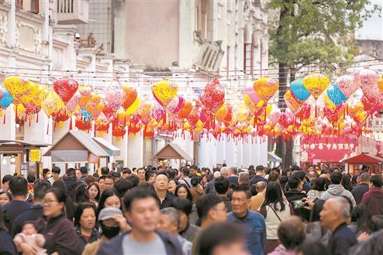 烟墩山下,焕新升级的孙文西路步行街开启新春嘉年华;中山影视城内,白天民俗演艺与晚上的“梦幻之夜”彩灯会精彩交织;中山市博物馆里,市民在迎春纳福中感受传统文化的独特魅力……2025年春节期间,中山以“游赏美丽中山”为主题,组织开展约800场特色文旅活动,诚邀广大游客感受“人间烟火气,湾区好生活”。这是深中通道开通后的首个春节,中山营造浓厚的新春氛围,将优质文旅产品带给八方来客,以文旅热带动消费旺。