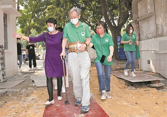 王颂汤(画面中拄拐者)和志愿者一起到湛江进行访贫助学家访核查 资料图
