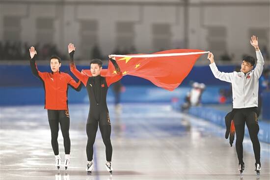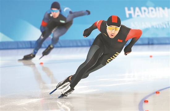 速度滑冰赛场中国队同样传来捷报。高亭宇在速度滑冰男子500米决赛中以34秒95的成绩夺冠。随后,在速度滑冰男子短距离团体追逐赛中,由高亭宇、宁忠岩、廉子文组成的中国队以默契的配合和强劲的实力,滑出了1分19秒22的好成绩夺得金牌,高亭宇也收获了本届亚冬会的个人第三金。