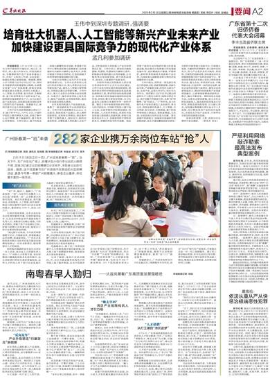 2月2日,东莞、佛山等市已组织本地区重点用工企业,前往广西、贵州等协作地区开展“送岗上门”等专项活动,助力企业用工与劳动者求职“双向奔赴”; 2月6日、7日,广东企业组团前往毕节和六盘水开展揽才招聘,102家广东企业线上线下参会、提供9000多个岗位。