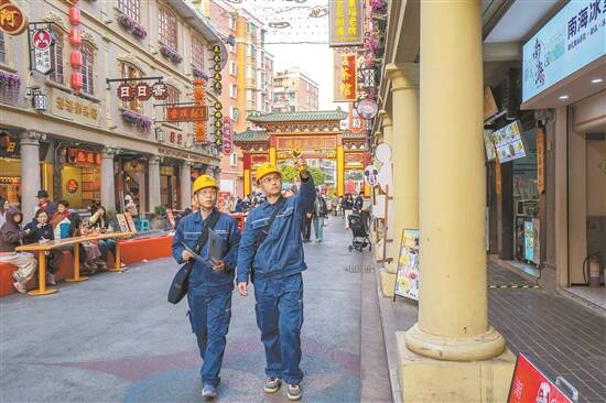 数字化消费是今年春节消费的一大趋势。数据显示,春节期间,互联网和相关服务、软件和信息技术服务业用电量农历假期同比增长24.44%、18.53%。在肇庆的宋城骑楼街,从年初一持续开展的龙狮大巡游、非遗体验打卡、光影艺术嘉年华等活动吸引了大批游客。“春节期间最高日电量5741千瓦时,比节前增长近2.9倍。”南方电网广东肇庆端州供电局供电服务中心经理朱志华表示,这折射出夜间经济、国货“潮品”等新型消费正在蓬勃发展。