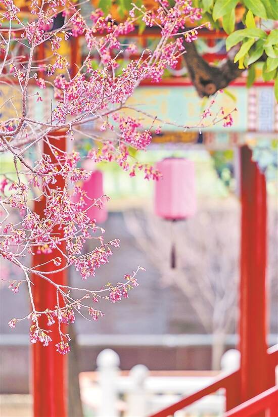 羊城晚报讯 记者徐振天报道:3月2日,以“樱梦山海·百灵来朝”为主题的2025年宝墨园汉风古韵樱花节盛大开幕,打造集赏樱、观演、游园、消费于一体的春日盛会,为市民游客呈现一场别具匠心的樱花奇幻之旅。