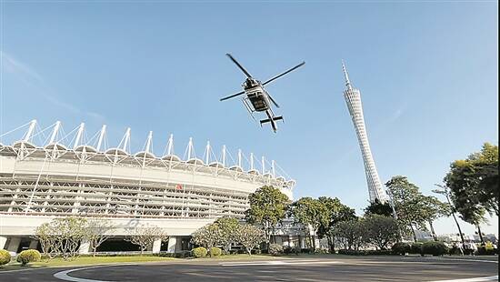执飞广州白云机场-海心沙低空飞行航线的直升机从起降点起飞(资料图)