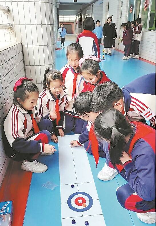 日前,记者探访旧部前小学。教室外走廊上已零星布置了如“迷你版”旱地冰壶、套圈、萝卜蹲指示地贴等游戏装置——这是在校方“我的课间我做主”倡议下,各班学生的“自选动作”。此前课间十分钟时,罕见这么多花样,但随着时间延长五分钟,学生们“脑洞大开”,在传统游戏上加入很多新元素——这些新游戏成为校园一道风景线。