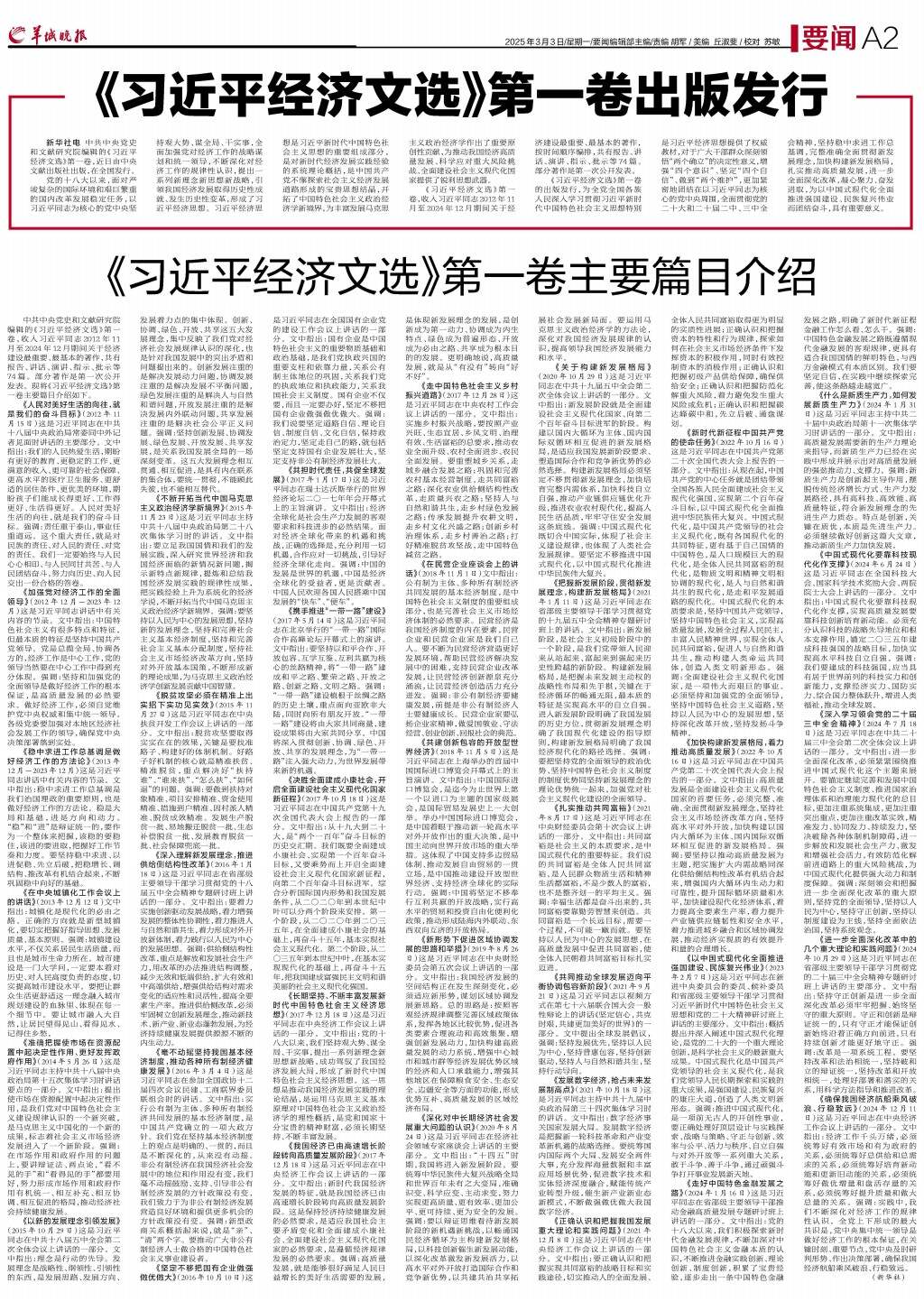 《习近平经济文选》第一卷出版发行
