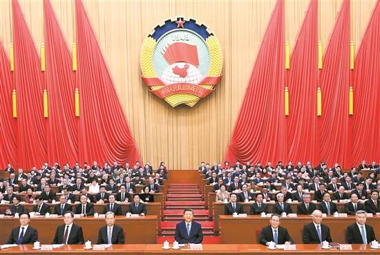 3月4日下午,全国政协主席王沪宁代表政协第十四届全国委员会常务委员会,向大会报告工作 新华社发