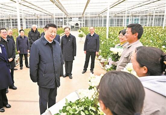 19日下午,习近平来到丽江现代花卉产业园。在展厅,他察看玫瑰、马蹄莲鲜切花品种展示,听取云南花卉产业发展情况介绍。在玫瑰花种植区,他了解智能温室无土栽培技术,同现场村民、技术人员亲切交谈。他还来到玫瑰花分级包装生产线,察看筛选、分级到包装、发货的全流程,对鲜切花通过物流及时外销表示肯定。习近平指出,云南花卉产业前景广阔,要着眼全产业链,从种业端、种植端、市场端不断深耕细作,让这一“美丽产业”成为造福群众的“幸福产业”。