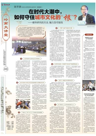近日,2025《岭南大讲堂》首期讲座活动在广东省博物馆举办。北京大学哲学社会科学一级教授、河南大学近现代中国研究院院长、中央文史研究馆馆员陈平原作为主讲嘉宾,以《如何让城市更有文化?——都市研究的方法、魅力及可能性》为主题,从都市研究的角度,条分缕析城市的文化脉络与人文精神,线上线下众多观众同场倾听并提问。