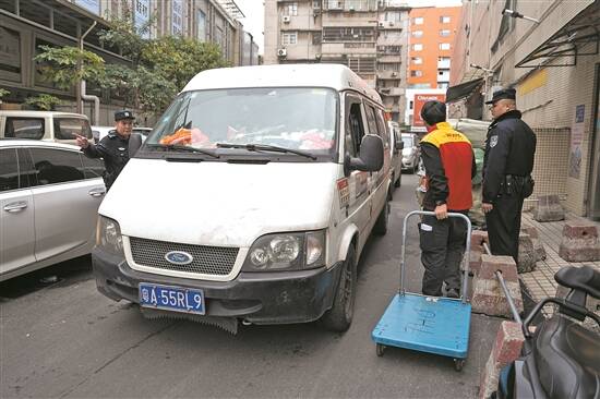 “不要急,慢慢来,一个一个走。”傍晚时分,广州国际鞋业广场内街,多辆小三轮挤在转角处,民警黄国光正带着辅警疏导指引。他利落地挥动手臂,三下五除二,路通了。
