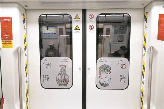8节车厢,分别承载着以陈少芳、张民辉、谭广辉、尹志强、翟惠玲、唐锦全、何丽芬、谭展鹏、周承杰、王新元、梁向昭、练晓红等非遗大师为代表的“三雕一彩一绣”(即牙雕、玉雕、木雕和广彩、广绣)、剪纸、泥塑、西村窑等非遗版权作品。