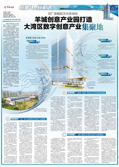 例如,为构建羊城创意产业园的数字创意产业生态链条,羊城晚报报业集团将在岭南数字创意大厦建立岭南文化大数据中心,以之作为岭南数字创意大厦和羊城创意产业园的数据底座,发布一系列文化产业榜单指数、数据产品,努力让粤港澳大湾区乃至国内外的文化萌芽、文化现象、文化进步、文化变革在岭南数字创意大厦首发。
