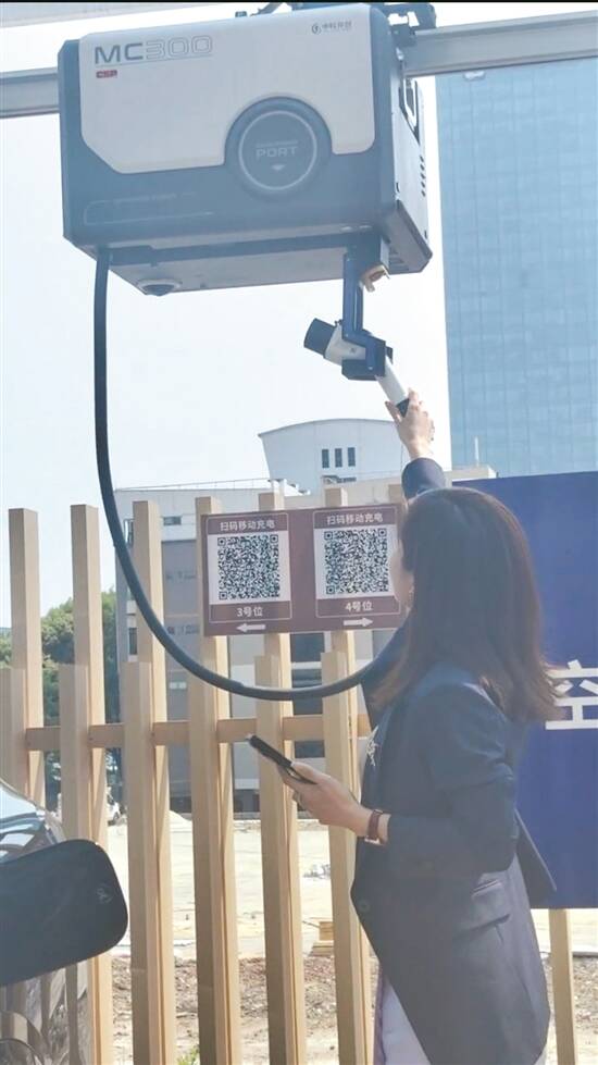此外,公司锚定需求不断创新,在业内发布首款移动充电机器人。据悉,只需轻点手机,充电机器人便会沿着空中导轨,轻巧地滑到车位上方,自动为车辆充电,充电完毕自动收枪,一台机器人可对接10-20台车辆。中科开创总裁助理尚美玉表示,这种“导轨移动式共享充电”模式,不仅解决了传统充电桩的“油车占位”问题,还将充电效率提升了4倍,目前已在穗深不少停车场进行示范性应用。