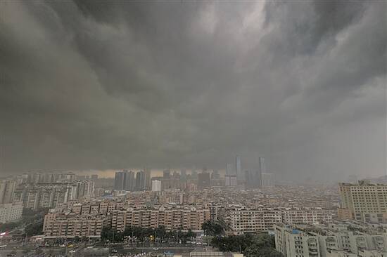 昨日午后,强对流天气来临,广州天河上空乌云压城 羊城晚报记者 曾育文 摄