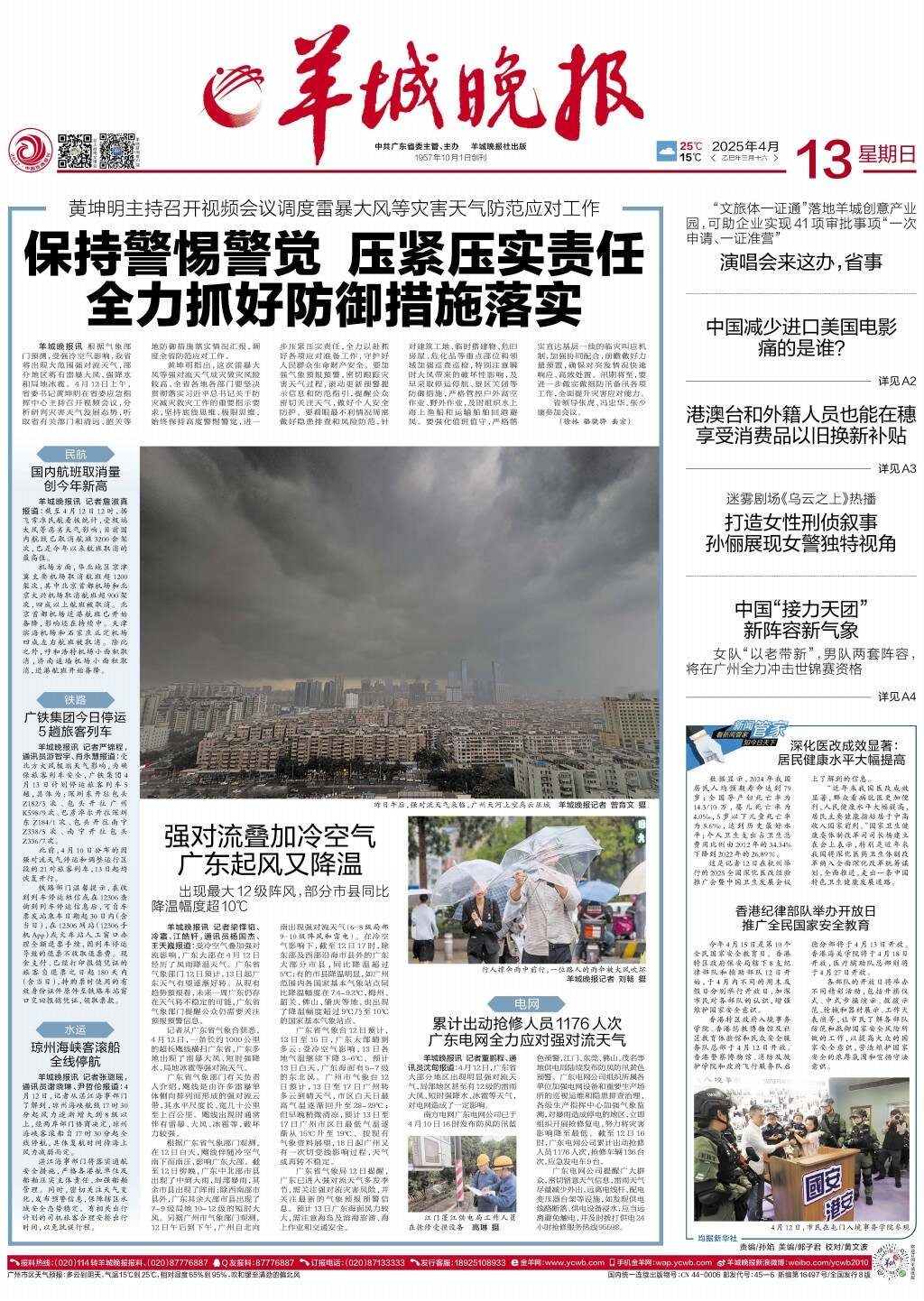 累计出动抢修人员1176人次 广东电网全力应对强对流天气