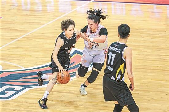 广东女篮杨力维(左一)持球突破