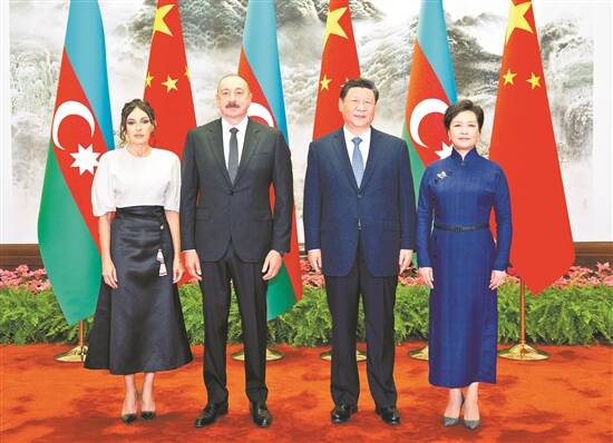 4月23日上午,国家主席习近平在北京人民大会堂同来华进行国事访问的阿塞拜疆总统阿利耶夫举行会谈。这是习近平和夫人彭丽媛同阿利耶夫和夫人阿利耶娃合影 新华社发