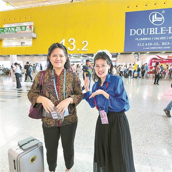 展馆内人声鼎沸,来自世界各地的客商络绎不绝。苏宝平也遇到不少“老乡”——来自印度尼西亚的客商。除此之外,苏宝平还和更多来自东盟国家的客商进行了交流。