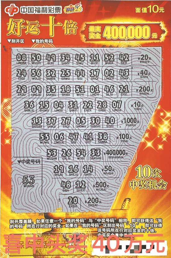 中奖当天,杨先生刚好休假,他来到44140206福彩销售站点,买了10张“好运十倍”刮刮乐。“我平时都是买两三张玩玩,那天心情好就多买了几张。刮开前7张就中了一两个小奖,我还以为运气一般。拿起第八张开刮,刮开‘中奖号码’看到是‘53’,结果刮开‘我的号码’发现也有‘53’,再刮开对应的中奖奖金竟然是‘¥400000’!我激动得跳起来,当时脑袋一片空白,反复确认了好几遍,才敢相信自己真的中了大奖。”杨先生回想起中奖那一刻,仍然十分兴奋。