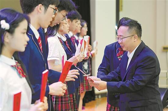 校长卢邦柱为高三学子颁发宪法