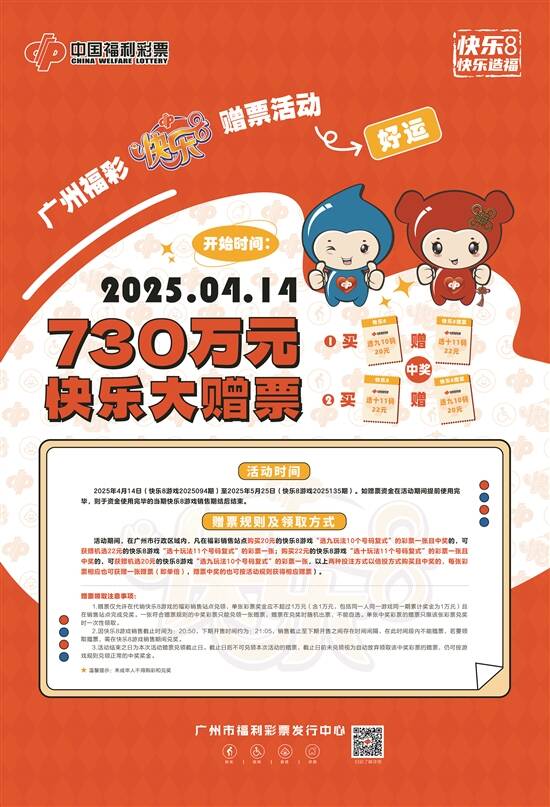 据了解,本次“快乐8快乐大赠票”活动共安排赠票资金730万元,赠完即止。活动期间,在广州市福彩销售场所内以“选九玩法10个号码复式”或“选十玩法11个号码复式”两种方式购买快乐8彩票,只要中奖就能获得赠票。