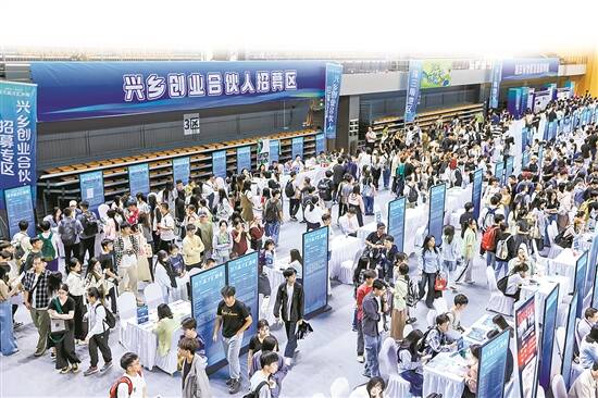 在主会场的兴乡合伙人招募专区,不少求职学子正关注青年兴乡培育计划。据了解,广东“百千万工程”青年兴乡培育计划实施两年来,通过开展乡村实训、举办兴乡青年创业大赛,着力提升学员乡村经营素养和能力,为有志于投身乡村振兴的创新创业青年提供展示平台、搭建合伙人选择机制,激励广大青年投身兴乡创业工作,打造县域特色农产品和文旅项目,赋能县域经济发展。