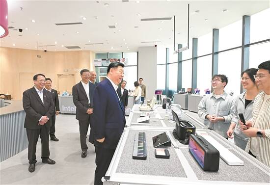 29日上午,习近平在中共中央政治局委员、上海市委书记陈吉宁和市长龚正陪同下,来到位于徐汇区的上海“模速空间”大模型创新生态社区调研。