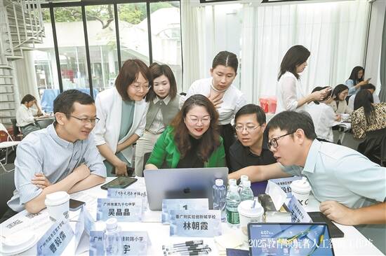 4月26日,三十多位来自广州各中小学的校领导化身“小程序员”,分组亲手设计小程序,亲身感受AI教育工具的魔力