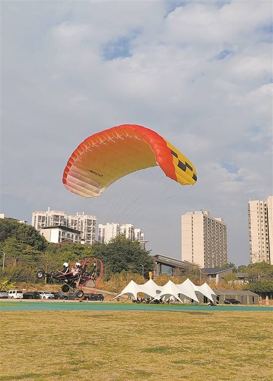 广州从化时空亿航飞行基地,游客正在体验动力伞