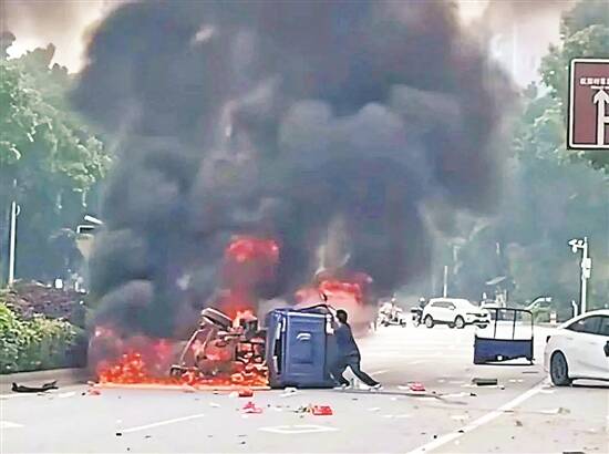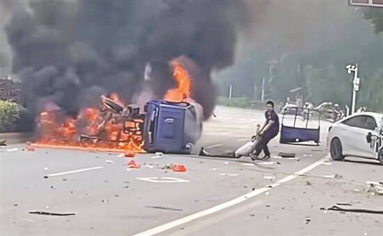 车祸发生后,现场一片狼藉,道路上散落着车辆碎片。路过的钟威第一时间掏出手机拨打120报警,但看着火势越来越猛,被困司机生死未卜,他毅然决定展开救援。初次破窗时,泄漏的汽油被引燃,火舌猛地蹿出,将他逼退。但看到车内司机因吸入浓烟已意识模糊,他再次迎难而上,数秒内将伤者拖出险境。