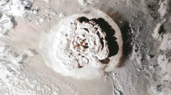 由 GOES-West 卫星拍摄的汤加火山喷发