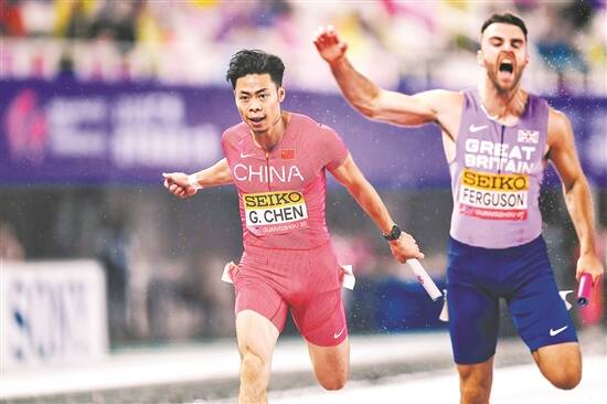 在赛后接受采访时,陈冠锋表示他们基本跑出了自己的水平,如果不是受到大雨天气的影响,他们的发挥还会更棒。“家乡人民太热情了!一进场就听到全场观众的欢呼声,他们的支持帮助我在这样的天气下更快地调动起自己的状态,非常感谢他们冒雨观战。”陈冠锋说。第二棒的孔玲瑶同样表示:“这是我第一次参加世界大赛,在开赛前有点紧张,但是在看到现场的氛围后兴奋度立刻就拉满了!我们的交接棒很顺利,跑得不错。”