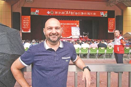 原本计划去逛博物馆的托克一家,路过比赛现场时被这里热烈的氛围所吸引,棋盘高悬如同武林擂台,棋手们隔着楚河汉界刀剑相交,围观棋迷们的讨论更是像说评书般精彩。“我们路过这里,看到了这个比赛,就忍不住停下来观看。”他说道。在现场,他看到棋手们在棋盘上纵横捭阖,一招一式让他看得津津有味。对于在欧洲也有中国象棋职业棋手这一情况,托克表示有所了解,“他们有,但是很少很少。”在他看来,中国象棋在欧洲的推广还有很长的路要走。