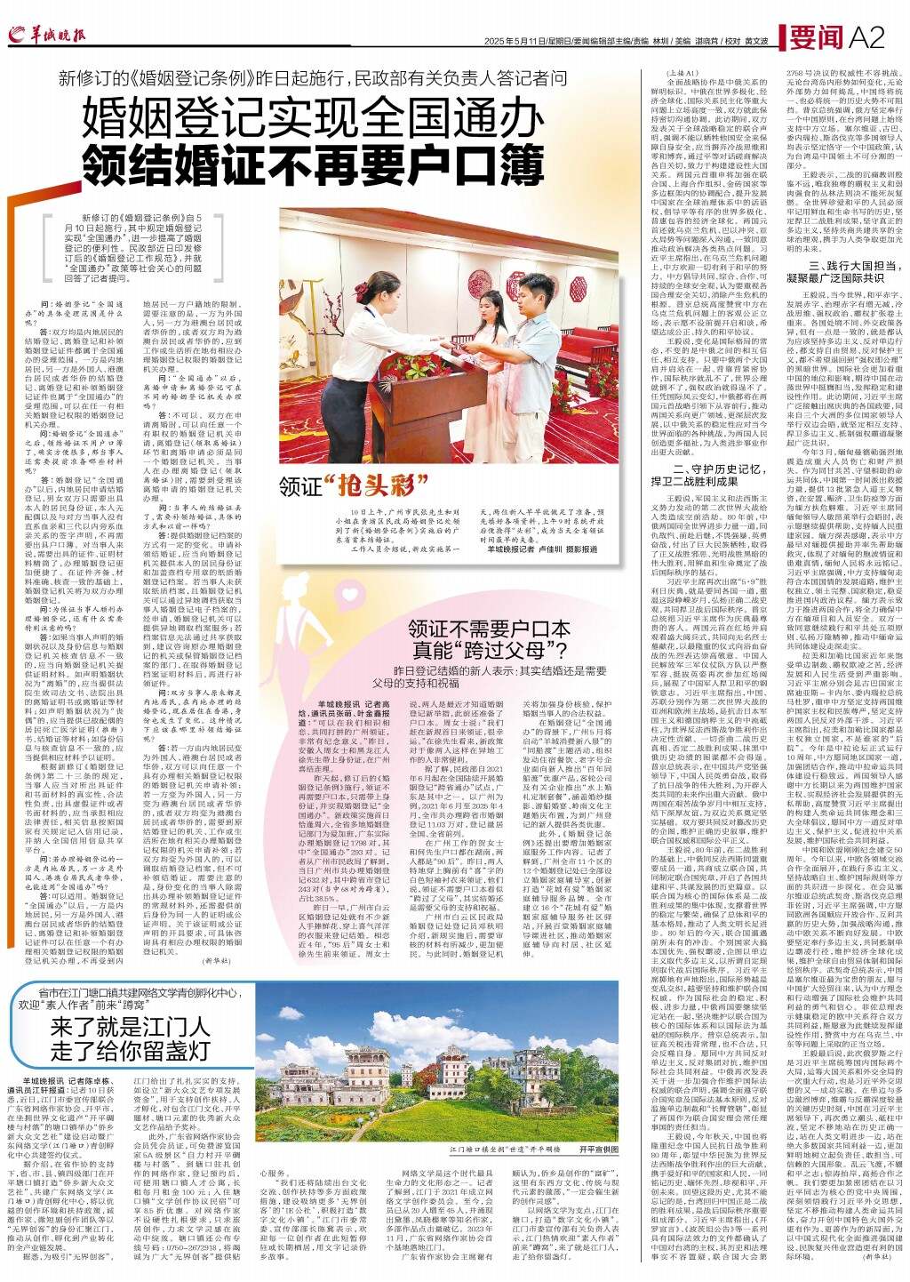 婚姻登记实现全国通办 领结婚证不再要户口簿