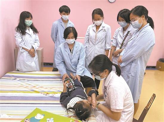 在智能教育取得阶段性成果的同时,为突破教育的瓶颈,教康融合成为提升教育质量的另一个重要平台,学校的教育从校园延伸到社会,实现教育康复科学发展。启智学校是全国首批医教结合实践基地,作为全国首批开展医教结合的学校之一,学校逐步建立起三级教康结合体系——与中山大学附属儿童行为发育研究中心建立科研联动机制,高位引领项目发展;与越秀区儿童医院开展项目研究,建立“随诊制度”,对重点个案学生进行评估及制订训练计划;与越秀区中医院则开展中医经络与情绪健康项目的研究。随着立体式教康融合项目推进,越秀区组建了一支医疗专家库,为区内特殊需要孩子早期干预、转介安置、行为处理与家庭康复等保驾护航。