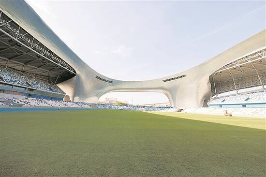据了解,综合体育场采用巨型桁架+张弦网格结构体系,最大跨度137.38米。而综合体育馆采用国内最大跨度索穹顶结构,净跨达124米,是目前全国室内场馆中最大的索穹顶结构,该结构是目前最具有现实应用价值的预应力空间结构。游泳馆屋面是在国内沿海强台风地区首次采用单层马鞍形索网结构,国内首创采用纯膜结构,并且配备双标准泳池,兼顾赛事需求与市民健身。
