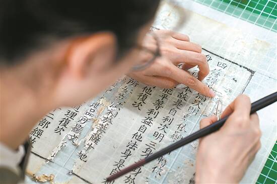 第十五期全国古籍修复技术与工作管理研修班学员在潮州市开元寺对《大藏经》进行修复
