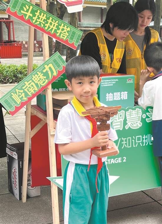 羊城晚报讯 5月18日,佛山市祖庙博物馆特设学校专场,邀请来自佛山多所小学的120组家庭参与主题为“对话千年祖庙,探索岭南魅力”的游园闯关活动。