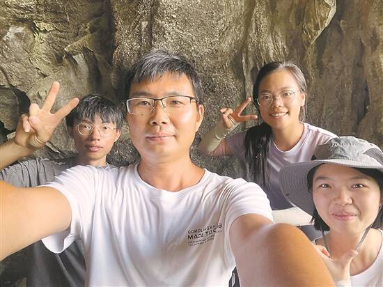 凡强(中)和学生发现八角花时的合影 受访者提供