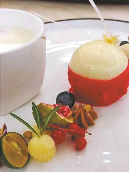 同样素有“荔乡”美誉的东莞市大朗镇,百年荔香滋养了大朗人的甜蜜生活也让当地年轻的粤菜师傅创造出具有大朗特色的荔枝美食盛宴:荔香鸳鸯虾芝恋、山楂荔枝鹅肝拼芝士荔枝卷、荔荔瑞士卷、荔枝饮品荔香青柠妃子泡……