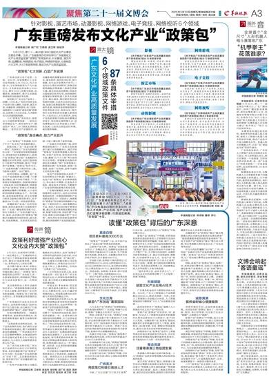 六大文化产业“政策包”均着眼国际,对具备国际视野的“广东创造”明确予以奖补,助推广东精品文化项目“走出去”。