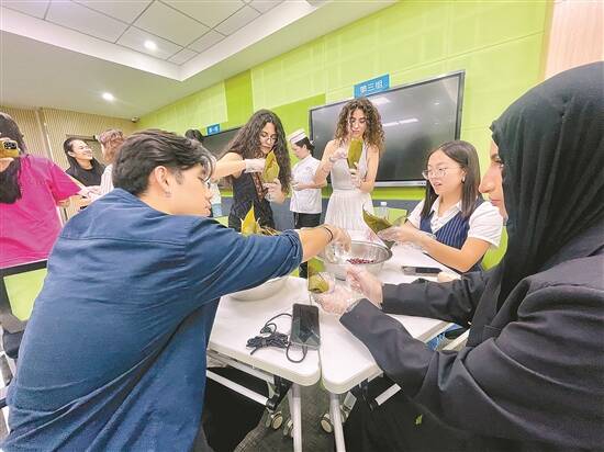 “这个迷你版粽子是我的第一个作品。”来自伊朗的张霖霏(RAFEI DONYA)边展示她的成果边说,“我今天还摸到了真实的艾草,闻起来很清新,没想到可以用来驱蚊避虫,回去就想在门口挂一株试试。”