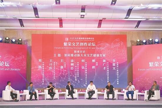 5月27日,2025文化强国建设高峰论坛繁荣文艺创作论坛在深圳举行。论坛以“主旨演讲+圆桌讨论”形式举行。来自全国各地的专家学者围绕主题“互联网条件下的新大众文艺”,发出“好声音”、给出“金点子”。