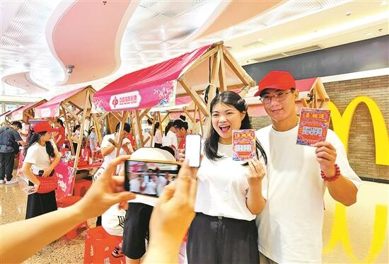活动现场,新人们获赠“喜相逢”刮刮乐即开票。一张张色彩鲜艳、寓意美好的福利彩票,表达了幸福美满的祝愿,也成为福彩公益文化的生动载体。为打造全方位沉浸式甜蜜体验,本次集体婚礼还创新推出“福彩公益+”系列特色项目,串联起整场活动的脉络。