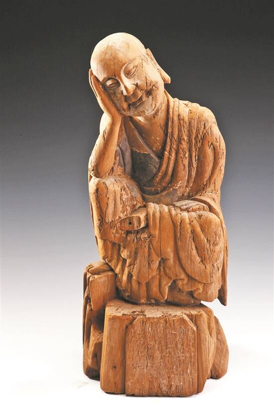 北宋庆历八年,木雕罗汉像,广东省博物馆藏(佛像头向右倾,闭目微笑,如在酣睡中悟道,雕工精湛,神态逼真)