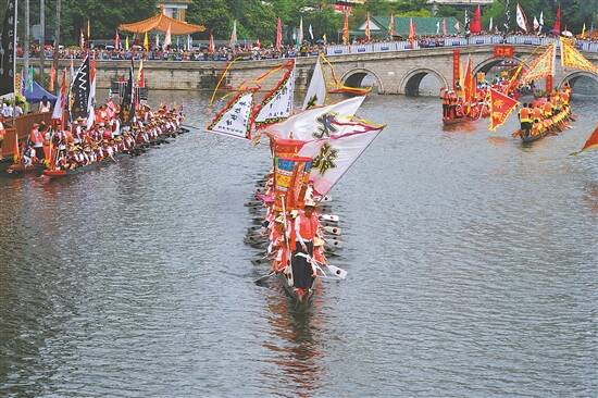 5月31日,第十五届“荔枝湾·新西关”民俗文化活动“五月五·龙船鼓”在广州荔湾湖公园举行。群“龙”相聚“泮塘景”,广佛乡情永流传,泮塘村热情招呼来自广佛两地近20个村社的龙船队,其中,593岁佛山盐步“老龙”如约而至,到荔枝湾探望泮塘龙船“契仔”。