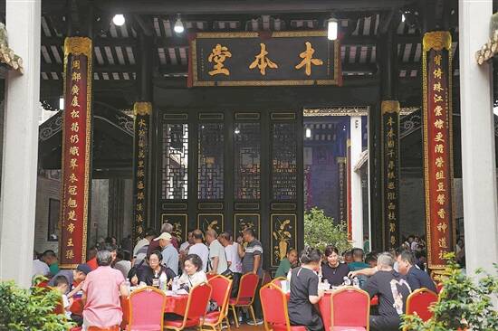广州猎德村设龙舟宴款待宾客 羊城晚报记者 邓鼎园 摄